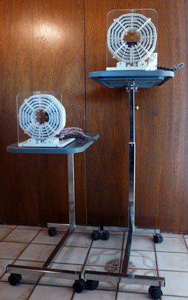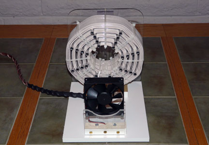 | The wire in these coils is very tightly wound, so it produces a high-quality strong magnetic field the same way a "standard" coil would. However, it is interlaced with cooling tubes and supplied with a fan that keeps it at a significantly lower temperature than a "standard" coil, so it can be used for much longer duration. For details, see below. The coils have a clear acrylic sheet cover, that does not interfere with the generated magnetic field, but provides extra protection for the user. The coil can be placed on any flat surface for easy use. The coils come complete with a 15 foot connecting cable and all the plugs. Because of the cool-coil design, the machine can be run continuously at 15 A without overheating the coil (below 190 degrees) for the following time durations: