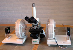 | This machine was developed to overcome the fact that the magnetic field generated by a single coil decays quite rapidly with the distance from the surface of the coil. There are two advantages in using two coils: 1. The volume in which the magnetic field strength is above 100 gauss is doubled. 2. The experimental time is cut in half. The 3D coil machine includes a control unit (bottom white box), and an extension unit (upper white box) that allows the machine to be used with two coils. The units can also be purchased separately below. The 3D machine can work with one or two coils. It has two sets of capacitors (one for each coil) and a special electronic circuit that controls the phase of the magnetic fields generated by the two coils. The 3D machine can be used in 3 different modes.